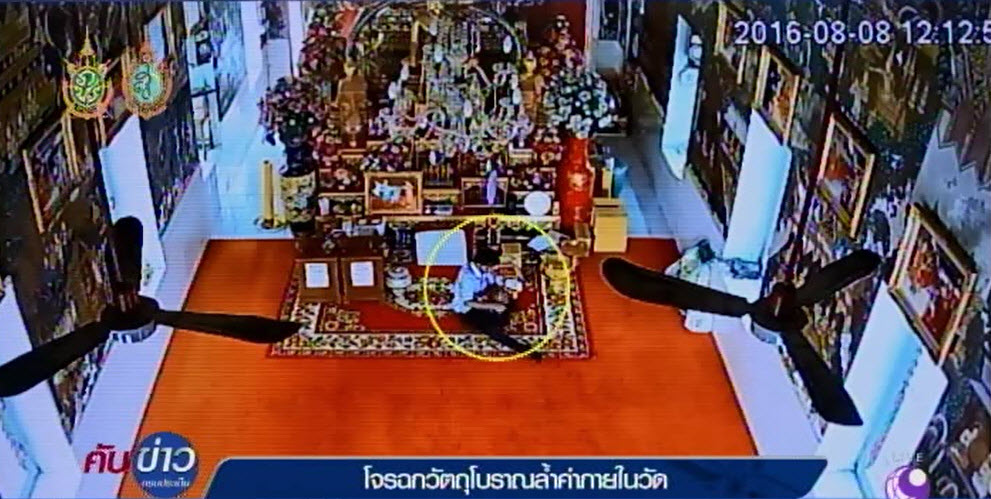 นนทบุรี 15 ส.ค.-คนร้ายทำทีเป็นนักท่องเที่ยวย่องขโมยวัตถุมงคลล้ำค่ากลางวันแสกๆ ในวัดเชิงเลน จ.นนทบุรี