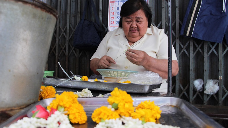“ถ้าลูกชายยังอยู่ก็คงจะสบายกว่านี้ เพราะช่วงที่ลูกเรียนจบมาก็อยากให้แม่เลิกร้อยพวงมาลัยขาย แต่แม่ยังทำไหวก็ขอทำไปก่อน ถ้าเลิกร้อยพวงมาลัยในวันที่ลูกขอให้เลิก วันนี้คงลำบาก เพราะไม่มีลูกเลี้ยงดูแล้ว พี่น้องก็ตายหมดแล้ว เหลือเพียงแค่หลานสาวคนเดียวที่มาช่วยกันร้อยพวงมาลัยขายแบ่งข้าวกินกันไป ก็อยากให้ฝ่ายนั้นได้เห็นใจบ้าง เวลาก็เนิ่นนานมาถึง 9 ปี.- สำนักข่าวไทย