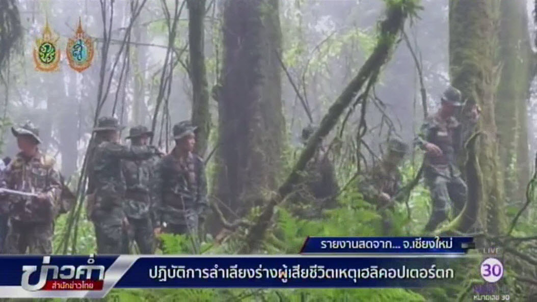 เชียงใหม่ 15 ส.ค.-ปฏิบัติการค้นหาร่างของทหารทั้ง 5 นาย และเฮลิคอปเตอร์ซึ่งประสบอุบัติเหตุตกในเขตอุทยานแห่งชาติดอยอินทนนท์ใกล้จะยุติแล้ว ขณะนี้เจ้าหน้าที่ชุดภาคพื้นกำลังลำเลียงร่างของทหารทั้ง 5 นาย ออกมาจากจุดเกิดเหตุ ซึ่งก็เป็นไปอย่างยากลำบาก และล่าช้ากว่ากำหนด