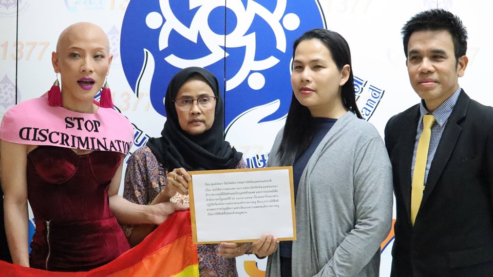 ผู้สื่อข่าวรายงานว่า เวลา 13.00 น. วันนี้ (22 ก.ค.) เครือข่ายครู อาจารย์ที่มีความหลากหลายทางเพศ นำโดย นายกิตตินันท์ ธรมธัช นายกสมาคมฟ้าสีรุ้งแห่งประเทศไทย เข้ายื่นคำร้องต่อสำนักงานคณะกรรมการสิทธิมนุษยชนแห่งชาติ (กสม.) กรณีเครือข่ายครูข้ามเพศถูกเลือกปฏิบัติในสถานศึกษา โดยมีนางอังคณา นีละไพจิตร กรรมการสิทธิฯ เป็นตัวแทนรับเรื่องร้องเรียน กรณีดังกล่าวเกิดขึ้นกับครูผู้ช่วยข้ามเพศของโรงเรียนแห่งหนึ่งในจังหวัดบุรีรัมย์ ที่ถูกทางโรงเรียนออกเอกสารที่มีข้อความตักเตือนเรื่องการแต่งกายข้ามเพศ จนนำไปสู่การประเมินการปฏิบัติงานที่พบว่าครูผู้ช่วยคนดังกล่าว ถูกประเมินด้วยคะแนนต่ำในทุกตัวชี้วัด มีเพียงคะแนนสูงเพียงในเรื่องการสอน จึงกังวลว่าจากการประเมินดังกล่าวอาจส่งผลกระทบทำให้ครูผู้ช่วยคนดังกล่าวถูกออกจากทางราชการ ประกอบกับทางผู้บริหารของโรงเรียนได้อ้างหนังสือของสำนักนายกรัฐมนตรีที่ตอบข้อหารือในประเด็นเรื่องครูข้ามเพศ ที่ยึดตามระเบียบการแต่งกายข้าราชการพลเรือน ระเบียบและกฎสำนักนายกรัฐมนตรีที่ตอบข้อซักถาม ซึ่งพบว่ามีความย้อนแย้งกันเอง แต่สุดท้ายสรุปว่าให้อยู่ในดุลยพินิจของผู้บังคับบัญชา