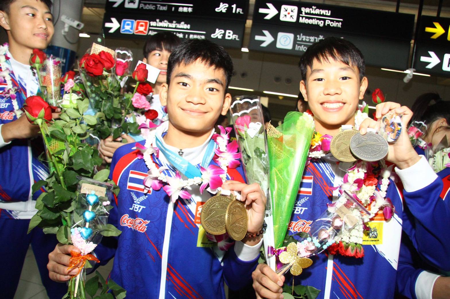 สุวรรณภูมิ 22 ก.ค.-ทัพนักเทควันโดยุวชน-เยาวชน พุ่มเซ่ กลับถึงไทยแล้ว หลังคว้ามาได้ 7 ทอง 6 เงิน และ 3 ทองแดง การแข่งขันเทควันโดพุมเซ่ ยุวชน-เยาวชน ชิงชนะเลิศแห่งเอเชีย ที่จอร์แดน