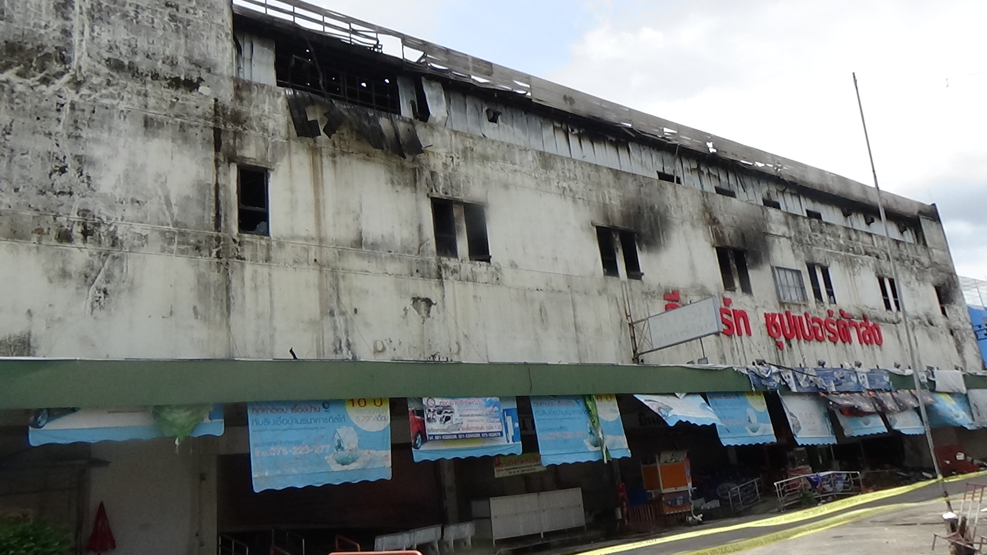 นายสุวิชัย จงหวัง วิศวกรสำนักงานโยธาธิการและผังเมืองจังหวัดตรัง เปิดเผยถึงความเสียหายไฟไหม้ห้างลีมาร์ท ซุปเปอร์ค้าส่ง ถ.สถานี อ.เมือง จ.ตรัง เมื่อวันที่ 12 สิงหาคมที่ผ่านมา ว่า ขณะนี้ยังไม่สามารถเข้าไปสำรวจภายในได้ เพราะต้องรอให้น้ำที่ฉีดดับเพลิงแห้งสนิทก่อน ซึ่งใช้ระงับเหตุไปกว่า 1 ล้านลิตร และจากการสำรวจเบื้องต้นพบบริเวณทางเดินชั้น 2 มีรอยร้าว พื้นปูนแตกและพังลงมาบางส่วน ประกอบกับยังมีน้ำไหลลงมาจากชั้นบน เวลานี้จึงยังไม่อนุญาตให้บุคคลใดเข้าไปในภายในอาคาร เพื่อความปลอดภัย เพราะเกรงว่าจะทรุดตัวลงมาอีกหากฝนตกหนัก โดยกำลังรอวิศวกรใหญ่จากส่วนกลางเข้ามาตรวจสอบอาคาร เพื่ออำนวยความสะดวกให้ชุดอีโอดีเข้าตรวจสอบอย่างละเอียด ก่อนจะทุบทิ้งทั้ง 4 ชั้น โดยได้กันพื้นที่ระยะ 15 เมตร ทั้ง 4 ด้าน เพื่อความปลอดภัยของประชาชน