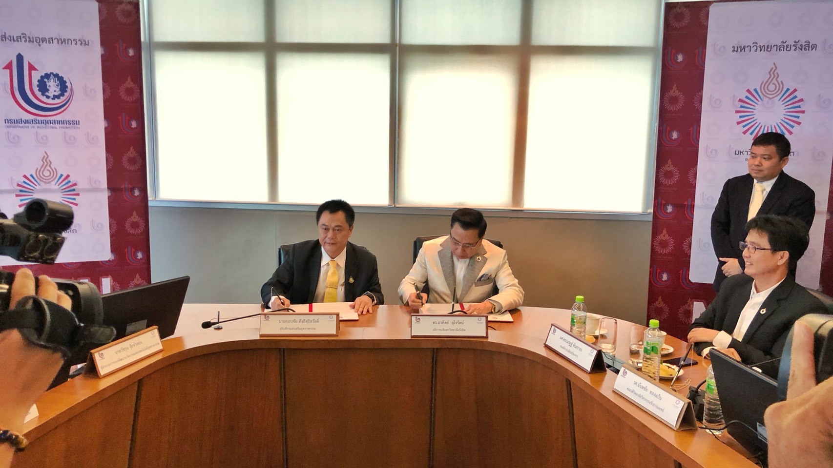 นายกอบชัย สังสิทธิสวัสดิ์ อธิบดีกรมส่งเสริมอุตสาหกรรม (กสอ.) ลงนามบันทึกข้อตกลงความร่วมมือทางวิชาการกับนายอาทิตย์ อุไรรัตน์ อธิการบดีมหาวิทยาลัยรังสิต ความร่วมมือครั้งนี้กรมส่งเสริมอุตสาหกรรมจะร่วมมือกับมหาวิทยาลัยรังสิตโดยวิทยาลัยวิศวกรรมชีวการแพทย์ในการขับเคลื่อนผลงานวิจัยและนวัตกรรมที่มีศักยภาพสู่เชิงพาณิชย์ผ่านกลไกการพัฒนาบุคลากร การสร้างแนวความคิดเพื่อให้เกิดนวัตกรรมใหม่ให้สามารถต่อยอดงานวิจัยและพัฒนาที่มีคุณภาพออกไปสู่ตลาดทั้งในและต่างประเทศต่อไป