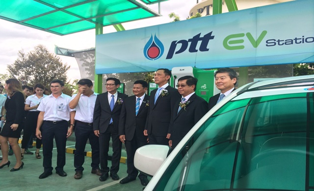 นายเทวินทร์ วงศ์วานิช ประธานเจ้าหน้าที่บริหารและกรรมการผู้จัดการใหญ่ บริษัท ปตท. จำกัด (มหาชน) เปิดเผยว่า ปตท.ในฐานะหน่วยงานของรัฐมีความยินดีและพร้อมที่จะสนองนโยบายของรัฐในเรื่องดังกล่าว โดยเริ่มศึกษาวิจัยและพัฒนาเทคโนโลยีรถยนต์ไฟฟ้าตั้งแต่ปี 2555 เพื่อสร้างองค์ความรู้และเตรียมความพร้อมรองรับธุรกิจรถยนต์ไฟฟ้า ซึ่งปัจจุบัน ปตท. มี PTT EV Station ที่มีเครื่องชาร์จไฟที่ได้มาตรฐานยุโรป (IEC) และมาตรฐานญี่ปุ่น (CHAdeMO) ทั้งหมด 4 แห่ง ได้แก่ อาคาร ปตท. สำนักงานใหญ่, สถาบันวิจัยและเทคโนโลยี ปตท. อ.วังน้อย จ.พระนครศรีอยุธยา, สถานีบริการน้ำมัน ปตท. สาขาแหลมฉบังขาออก จังหวัดชลบุรี และสถานีบริการน้ำมัน ปตท. สาขา The Crystal PTT ถนนชัยพฤกษ์ โดยมีแผนที่จะขยายเพิ่ม 2 สถานีภายในสิ้นปีนี้ และเพิ่มเป็น 20 สถานี ภายในปี 2560