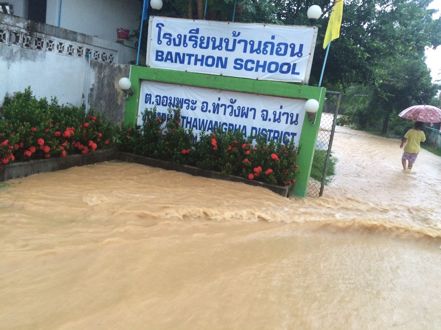 สถานการณ์ฝนตกหนักในพื้นที่จังหวัดน่าน รอบ 24 ชั่วโมง วัดปริมาณฝนได้เกิน 100 มิลลิเมตร ส่งผลให้แม่น้ำน่านและแม่น้ำสาขามีปริมาณน้ำเพิ่มสูง บางช่วงเอ่อท่วมชุมชนแล้ว คือ บ้านผาตูบ ต.ผาสิงห์ อ.เมือง ส่วน อ.ท่าวังผา น้ำท่วมหลายหมู่บ้าน ได้แก่ บ้านฝายมูล ดอนชัย ต้นฮ่าง ต.ป่าคา และบ้านถ่อน หมู่ 9 ต.จอมพระ ทางโรงเรียนบ้านถ่อนและโรงเรียนท่าวังผาพิทยาคมได้ประกาศปิดการเรียนการสอนชั่วคราว นอกจากนี้ ที่ อ.ปัว น้ำท่วมถนนหมู่บ้านขอน ต.ปัว รถทุกชนิดผ่านไม่ได้ ขณะที่ลำน้ำว้าระดับน้ำขึ้นสูงอย่างรวดเร็ว คาดว่าจะเอ่อท่วมบ้านเรือนอีกหลายหมู่บ้าน พร้อมกันนี้ทหาร