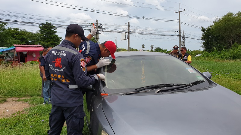 เมื่อเวลา 11.00 น. (27 ก.ค.) ร.ต.อ.ยุทธปวีร์ นวลพงศ์ รองสารวัตร (สอบสวน) สภ.ย่อยบางน้ำจืด อ.เมือง จ.สมุทรสาคร และเจ้าหน้าที่มูลนิธิการกุศลสมุทรสาคร ร่วมกันตรวจพิสูจน์รถเก๋งต้องสงสัย สีเทาดำ หลังได้ให้รถยกเคลื่อนย้ายมาไว้สนามหน้า สภ.ย่อยบางน้ำจืด เนื่องจากพลเมืองดีแจ้งว่าได้กลิ่นเหม็นเน่าโชยออกมาอย่างรุนแรง เกรงว่าจะเป็นเหตุฆาตกรรมอำพราง และรถคันดังกล่าวจอดทิ้งไว้ข้ามวันข้ามคืนกลางซอยราษฎร์พัฒนา 1 หมู่ 1 ต.บางน้ำจืด โดยไม่ปรากฏตัวเจ้าของ ระหว่างการตรวจพิสูจน์กลิ่นเหม็นเน่ายิ่งรุนแรงขึ้น ท่ามกลางอากาศร้อนระอุ