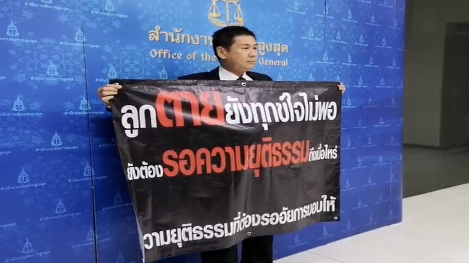 นายสาธร พุทธชัยยงค์ บิดา นรต.ชยากร พุทธชัยยงค์ หรือ โยโย่ ที่ฝึกกระโดดร่มเเล้วร่มไม่กาง เสียชีวิตที่ จังหวัดเพชรบุรี เมื่อปี 2557 ถือป้ายประท้วงการปฏิบัติหน้าที่ของอัยการสูงสุด หลังคดีอยู่ในชั้นอัยการสูงสุดมานานกว่าปีครึ่ง แต่คดีไม่คืบหน้า อีกทั้ง ยังมีผู้ถูกกล่าวหา พยายามแทรกแซงกระบวนการยุติธรรมในชั้นอัยการ พร้อมยื่นหนังสือร้องความเป็นธรรม กับนายโกศลวัฒน์ อินทุจันทร์ยง รองโฆษกสำนักงานอัยการสูงสุด