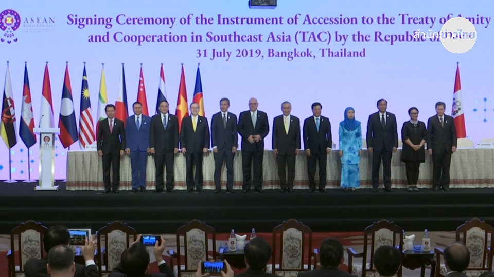 ผู้สื่อข่าวรายงานว่า ที่โรงแรมเซ็นทาราแกรนด์และบางกอกคอนเวนชันเซ็นเตอร์ เซ็นทรัลเวิลด์ กรุงเทพฯ ระหว่างการประชุมรัฐมนตรีต่างประเทศอาเซียน ครั้งที่ 52 รัฐมนตรีต่างประเทศอาเซียน ได้ร่วมพิธีลงนามภาคยานุวัติสารสนธิสัญญามิตรภาพและความร่วมมือในภูมิภาคเอเชียตะวันออกเฉียงใต้ (TAC) โดยสาธารณรัฐเปรู ตามด้วยประเทศผู้สมัครซึ่งอยู่ระหว่างการพิจารณา ซึ่งถือเป็นการเข้าร่วมภาคยานุวัติสนธิสัญญาฯ ของประเทศนอกอาเซียน ที่จะช่วยเสริมสร้างความไว้เนื้อเชื่อใจ และส่งเสริมการดำเนินความสัมพันธ์ระหว่างอาเซียนกับประเทศนั้น ๆ ได้ และยังเป็นการช่วยเสริมสร้างความมั่นคงและสันติภาพในภูมิภาคให้มีความเข้มแข็งยิ่งขึ้น ซึ่งสนธิสัญญา TAC เป็นกลไกหนึ่งที่สำคัญ ในการแก้ไขปัญหาโดยสันติวิธี และระงับข้อพิพาทที่ได้รับการยอมรับโดยทั่วไป