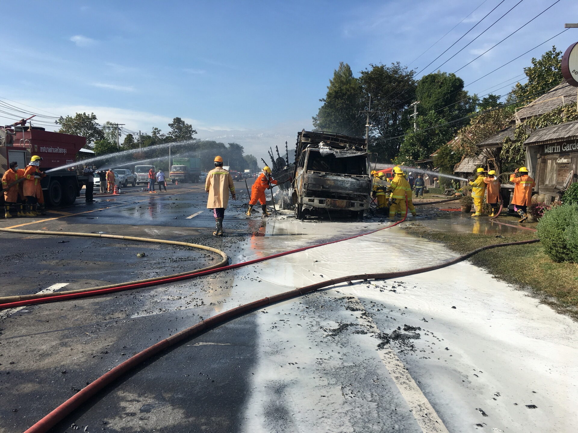เมื่อเวลา 08.30 น. วันนี้ (4 ธ.ค.) พ.ต.ต.สนัด พรหมประเสริฐ พนักงานสอบสวน สภ.ห้วยขะยุง อ.วารินชำราบ จ.อุบลราชธานี ประสานหน่วยดับเพลิงระดมรถน้ำ 7 คัน เข้าระงับเหตุเพลิงไหม้รถสิบล้อ ทะเบียน 82-5956 อุบลราชธานี บรรทุกสินค้ามาเต็มคัน บนถนนบ้านดอนชาด ต.บุ่งหวาย อ.วารินชำราบ-ศรีสะเกษ ฝั่งขาเข้าตัวอำเภอ ท่ามกลางเพลิงลุกไหม้อย่างหนักและเสียงปะทุตลอดเวลา เนื่องจากสินค้าในรถมีทั้งสี ทินเนอร์ เครื่องใช้พลาสติก เสื้อผ้า และอะไหล่ยนต์ จึงประสานขอรถฉีดสารดับเพลิงจากหน่วยป้องกันและบรรเทาสาธารณภัยเขต 13 นำโฟมเข้ามาฉีดสกัดนานกว่า 1 ชั่วโมง เพลิงจึงสงบ พบว่าทั้งรถและสินค้าเสียหายทั้งหมด เคราะห์ดีไม่มีผู้บาดเจ็บหรือเสียชีวิต ส่วนสาเหตุต้องรอเจ้าหน้าที่พิสูจน์หลักฐานมาตรวจสอบอีกครั้ง