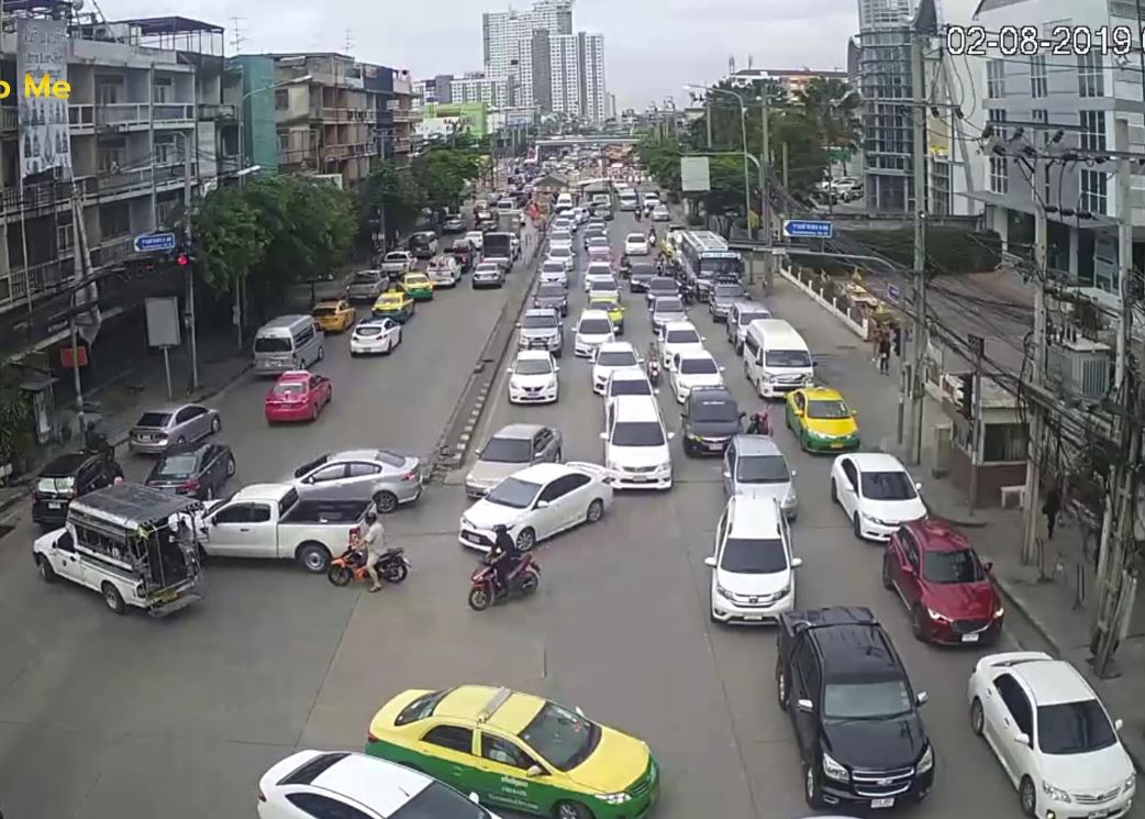 ถนนลาดพร้าว ขาเข้า มุ่งหน้าใต้ทางด่วนลดพร้าว ต่อเนื่องแยกรัชดา-ลาดพร้าว รถติดขัดมาก ท้ายแถวสะสมอยู่ที่ตรงข้าม รพ.เวชธานี
