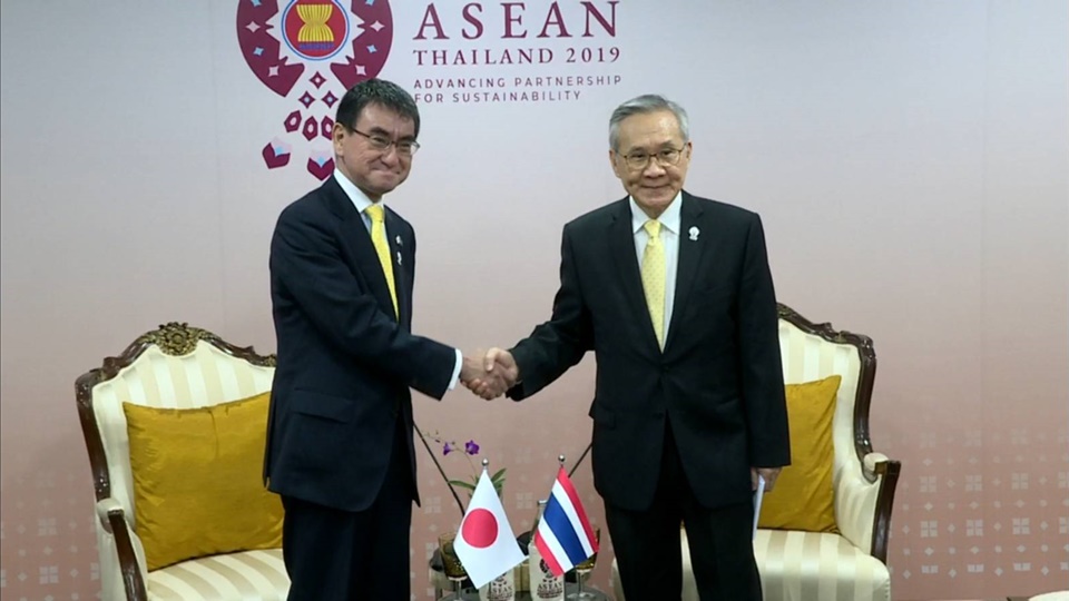 นายดอน ปรมัตถ์วินัย รัฐมนตรีว่าการกระทรวงการต่างประเทศ หารือทวิภาคีกับนายทาโร โคโนะ รัฐมนตรีต่างประเทศของญี่ปุ่น ระหว่างการประชุมรัฐมนตรีต่างประเทศอาเซียน ครั้งที่ 52 ได้นำผลลัพธ์จากการประชุมสุดยอดอาเซียน ครั้งที่ 34 ที่ไทยเป็นเจ้าภาพในช่วงต้นเดือนมิถุนายนที่ผ่านมา รวมถึงการประชุมสุดยอด G20 ระดับผู้นำประเทศ ที่นครโอซากาของญี่ปุ่นเมื่อปลายเดือนมิถุนายน 2562 โดยไทย-ญี่ปุ่น เห็นพ้องที่จะผลักดันเรื่องการค้า การลงทุนแบบเสรี การปฏิรูปองค์การการค้าโลก และการส่งเสริมความตกลงทางการค้าแบบพหุภาคี และเห็นควรร่วมมือเพื่อเสริมสร้างการพัฒนาที่ยั่งยืนทั้งในอาเซียนและภูมิภาค และร่วมกันต่อสู้กับความท้าทายในอนาคต นอกจากนี้ยังหารือถึงการที่ไทยจะเชิญญี่ปุ่น ร่วมสังเกตการณ์สถานการณ์การส่งตัวผู้ลี้ภัยกลับรัฐยะไข่.-สำนักข่าวไทย