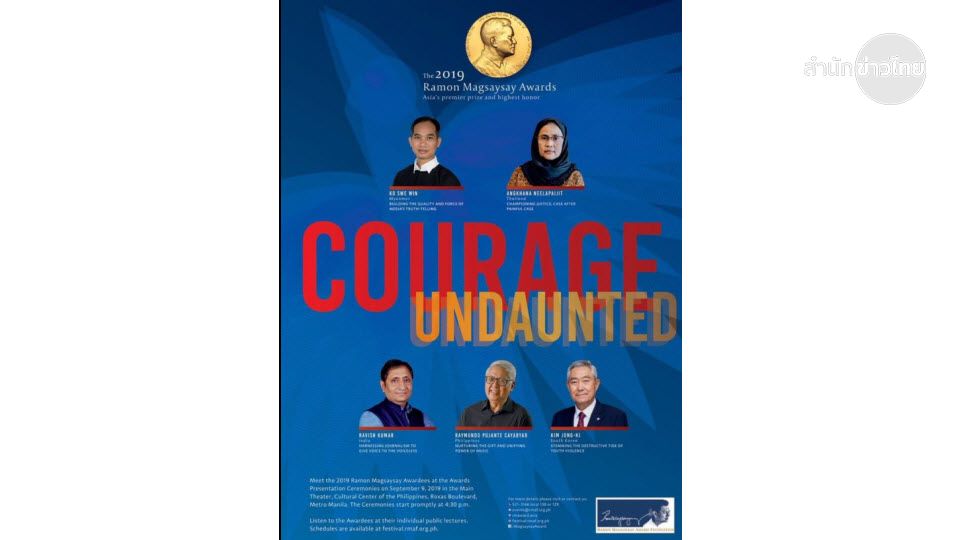 ผู้สื่อข่าวรายงานว่า ปี 2562 ยังมีผู้ที่ได้รับรางวัลแมกไซไซอีก 4 คนประกอบด้วย นายเรย์มุนโด ปูจันเต คายับยับ นักดนตรีชาวฟิลิปปินส์ ในฐานะผู้มีพรสวรรค์โดยธรรมชาติ ผู้รังสรรค์พลังที่เป็นเอกภาพให้กับดนตรีในฟิลิปปินส์ นายคิม จอง คี นักเคลื่อนไหวผู้สกัดกั้นกระแสความรุนแรงในหมู่เยาวชนในเกาหลีใต้ นายโก สเว วิน ผู้สื่อข่าวชาวเมียนมา และนายราวิศ กุมาร ผู้สื่อข่าวชาวอินเดีย . – สำนักข่าวไทย