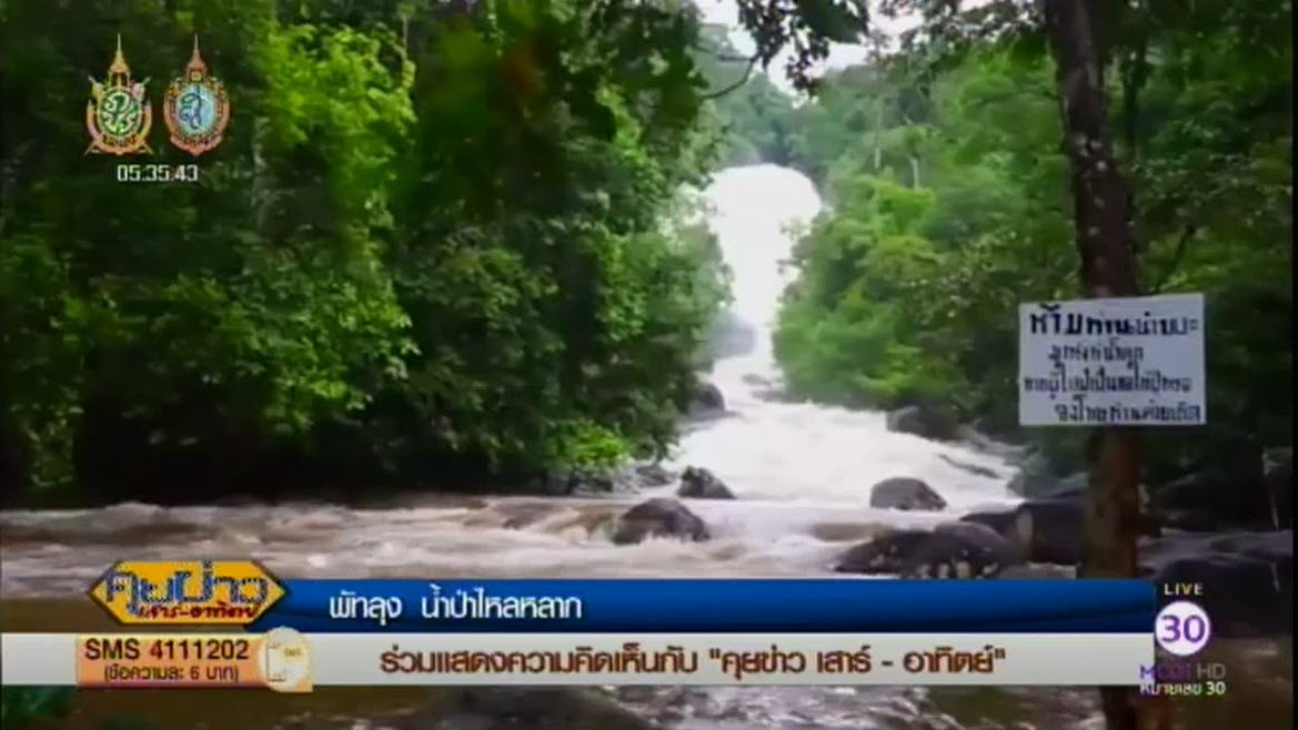 เมื่อเวลา 16.30 น.วันที่ 13 ส.ค.ได้เกิดฝนตกหนักในพื้นที่ จ.พัทลุง โดยเฉพาะบริเวณเทือกเขาบรรทัด อ.กงหรา และ อ.ศรีนครินทร์ ต่อเนื่องหลายชั่วโมง ทำให้มีน้ำป่าไหลหลากลงมาจากเทือกเขาบรรทัด โดยเฉพาะตามน้ำตกต่างๆ อย่างน้ำตกไพรวัลย์ น้ำตกมโนราห์ น้ำตกเขาคราม น้ำตกโตนแพรทอง น้ำตกหนานสูง และน้ำตกปากราง ทำให้น้ำไหลแรงและมีสีแดงขุ่น เจ้าหน้าที่ต้องประกาศให้นักท่องเที่ยวงดเล่นน้ำ เพื่อความปลอดภัย