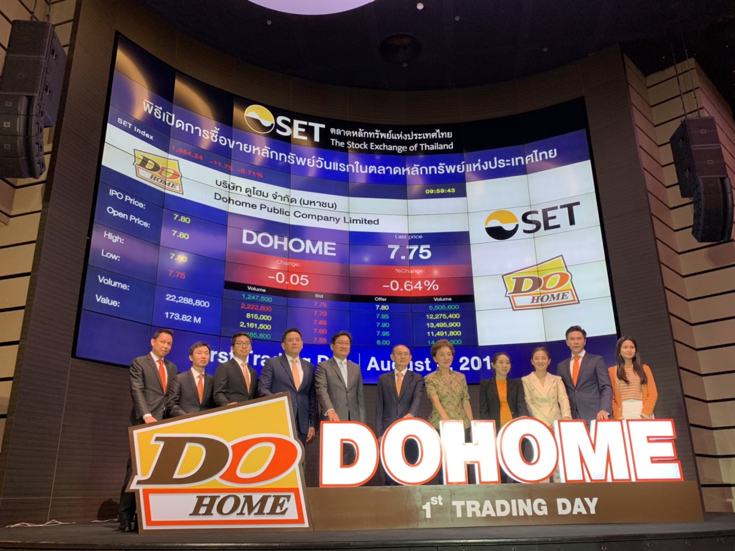 ตลาดหลักทรัพย์แห่งประเทศไทย 6 ส.ค. – DOHOME เข้าซื้อขายหุ้นวันแรกในตลาดหลักทรัพย์แห่งประเทศไทย (SET) โดยเปิดตลาดราคาอยู่ที่ 7.80 บาทต่อหุ้น