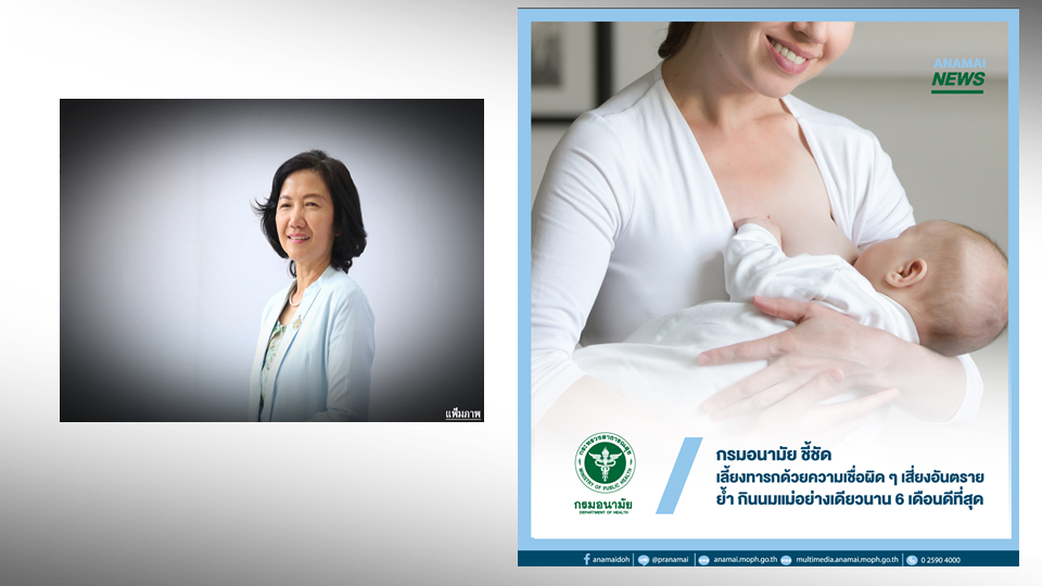 อธิบดีกรมอนามัย กล่าวต่อว่า หากกินอาหารอื่นที่ไม่ใช่นมแม่เข้าไปอาจส่งผลให้เกิดความผิดปกติ เช่น ท้องอืด อาหารไม่ย่อย ท้องผูก ท้องเสีย แพ้อาหาร และเสี่ยงต่อการเสียชีวิตจากลำไส้อุดตัน แต่หลังจากทารกอายุครบ 6 เดือน เมื่อระบบย่อยและดูดซึมอาหารพัฒนาได้ค่อนข้างสมบูรณ์แล้ว จึงให้เริ่มกินอาหารที่เหมาะสมตามวัย เช่น กล้วยน้ำว้า ไข่แดง ข้าว ผัก ผลไม้ และสารอาหารอื่นๆ ควบคู่กับการกินนมแม่อย่างต่อเนื่อง หากลูกวัยทารกมีอาการ เช่น ท้องผูก แหวะนม ควรปรึกษาสถานบริการสาธารณสุขใกล้บ้าน