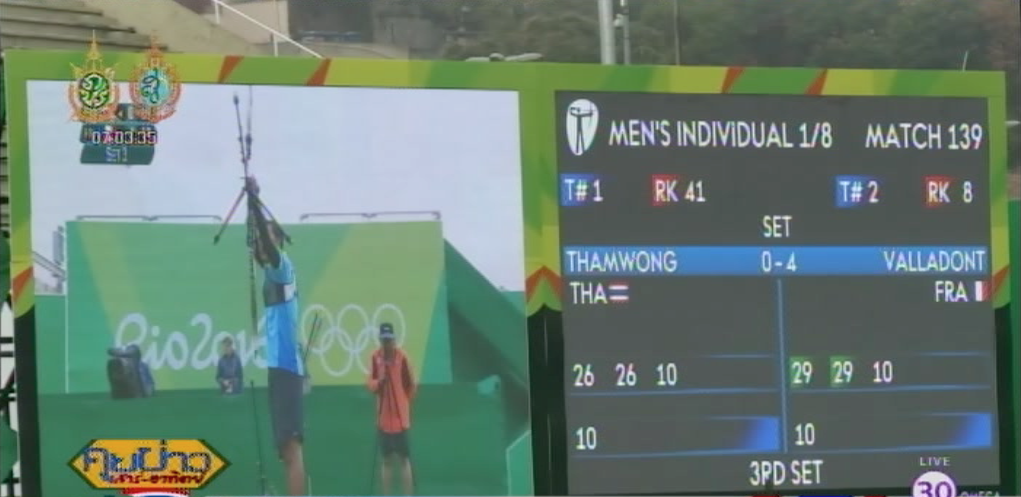 บราซิล 13 ส.ค.- วิทยา ทำว่อง นักยิงธนูทีมชาติไทย พ่ายโรบินฮูดหนุ่มจากฝรั่งเศส ตกรอบ 16 คนสุดท้ายในรีโอเกมส์ แต่ก็เป็นผลงานดีที่สุดของเขาในโอลิมปิก