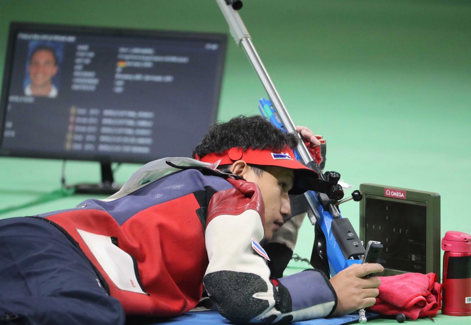 การแข่งขันยิงปืนในรีโอเกมส์ เมื่อคืนที่ผ่านมา ปืนยาวท่านอน 50 เมตร รอบแรก อัฐพล เอื้ออารี เจ้าของเหรียญทองซีเกมส์คนล่าสุด ซึ่งผ่านเข้าแข่งขันโอลิมปิกเป็นครั้งแรกทำผลงานได้อย่างยอดเยี่ยม โดยยิงได้ 625.3 คะแนน รั้งอันดับ 7 ผ่านเข้ามาแข่งขันรอบชิงชนะเลิศ ขณะที่ นภิศ ต่อตั้งพานิช นักแม่นปืนชายอีกคนยิงได้ 620.9 คะแนนอยู่อันดับที่ 29 แต่มาในรอบชิงชนะเลิศ 8 คนสุดท้าย ซึ่งแข่งขันคัดคนที่มีคะแนนน้อยที่สุดออกทีละคน อัฐพล ทำได้ไม่ดีนักและต้องหลุดออกจากการชิงเหรียญเป็นคนแรก หลังยิงไป 2 นัดทำได้ 80.8 คะแนน ขณะที่คนที่อยู่อันดับ 7 ทำได้ 81.5 คะแนน โดยเหรียญทองของประเภทนี้ได้แก่ เฮนรี ยุงฮาเอลเนล แชมป์เวิล์ดคัพคนล่าสุด จากเยอรมนี ที่ยิงครบ 20 นัด ทำได้ถึง 209.5 คะแนน เป็นสถิติใหม่ของรอบชิงชนะเลิศกีฬาโอลิมปิก