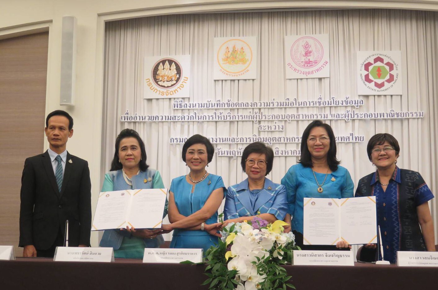นางเพชรรัตน์ สินอวย อธิบดีกรมการจัดหางาน และ นางสาวสมจิณณ์ พิลึก ผู้ว่าการการนิคมอุตสาหกรรมแห่งประเทศไทย (กนอ.) ร่วมลงนามในบันทึกข้อตกลงความร่วมมือในการเชื่อมโยงข้อมูลเพื่ออำนวยความสะดวกในการบริการแก่ผู้ประกอบอุตสาหกรรม