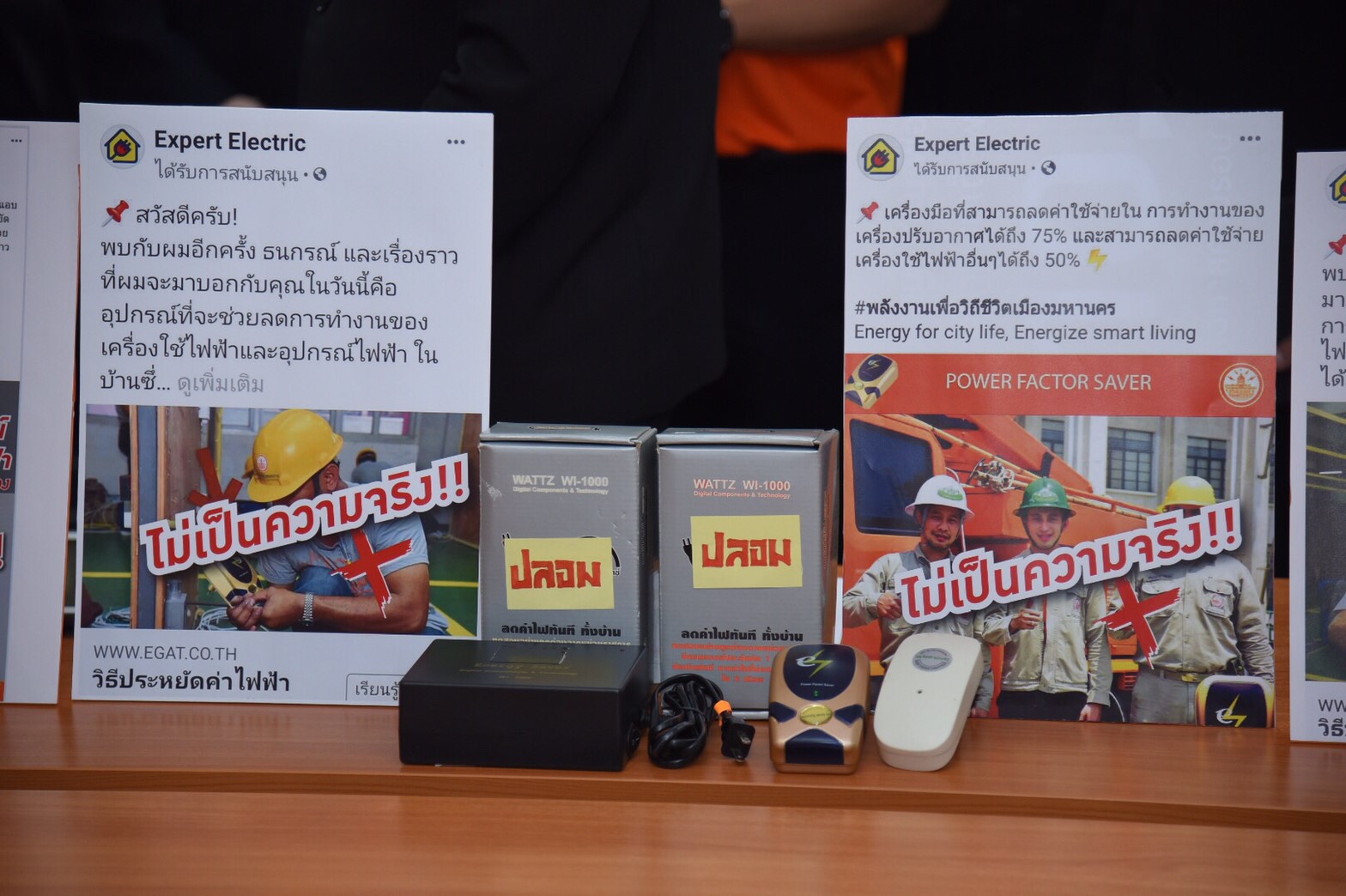วันนี้ (8 สิงหาคม 2562) นายจาตุรงค์ สุริยาศศิน ผู้ช่วยผู้ว่าการการไฟฟ้านครหลวง (กฟน.) ในฐานะโฆษก กฟน. พร้อมด้วย นายประเสริฐศักดิ์ เชิงชวโน ผู้ช่วยผู้ว่าการยุทธศาสตร์องค์การ การไฟฟ้าฝ่ายผลิตแห่งประเทศไทย (กฟผ.) และ นายกิตติศักดิ์ วรรณแก้ว รองผู้อำนวยการฝ่ายวิจัยและพัฒนาระบบไฟฟ้า การไฟฟ้าส่วนภูมิภาค (PEA) นำเจ้าหน้าที่พร้อมผู้เสียหาย จำนวน 4 คน เข้าแจ้งความดำเนินคดี หลังพบว่า มีมิจฉาชีพโฆษณาหลอกขายอุปกรณ์ประหยัดไฟฟ้าอ้างว่าลดค่าไฟได้ ผ่านช่องทาง Facebook Fanpage : Expert Electric อีกทั้งยังละเมิดแอบอ้างหน่วยงานรัฐหรือผู้มีชื่อเสียงต่าง ๆ หรือนำภาพข่าวของ 3 การไฟฟ้า มาตัดต่อโฆษณาชวนเชื่อหลอกลวงประชาชน ณ กองบังคับการปราบปรามการกระทำความผิดเกี่ยวกับอาชญากรรมทางเทคโนโลยี (บก. ปอท.) ศูนย์ราชการเฉลิมพระเกียรติ 80 พรรษา ถนนแจ้งวัฒนะ กรุงเทพฯ