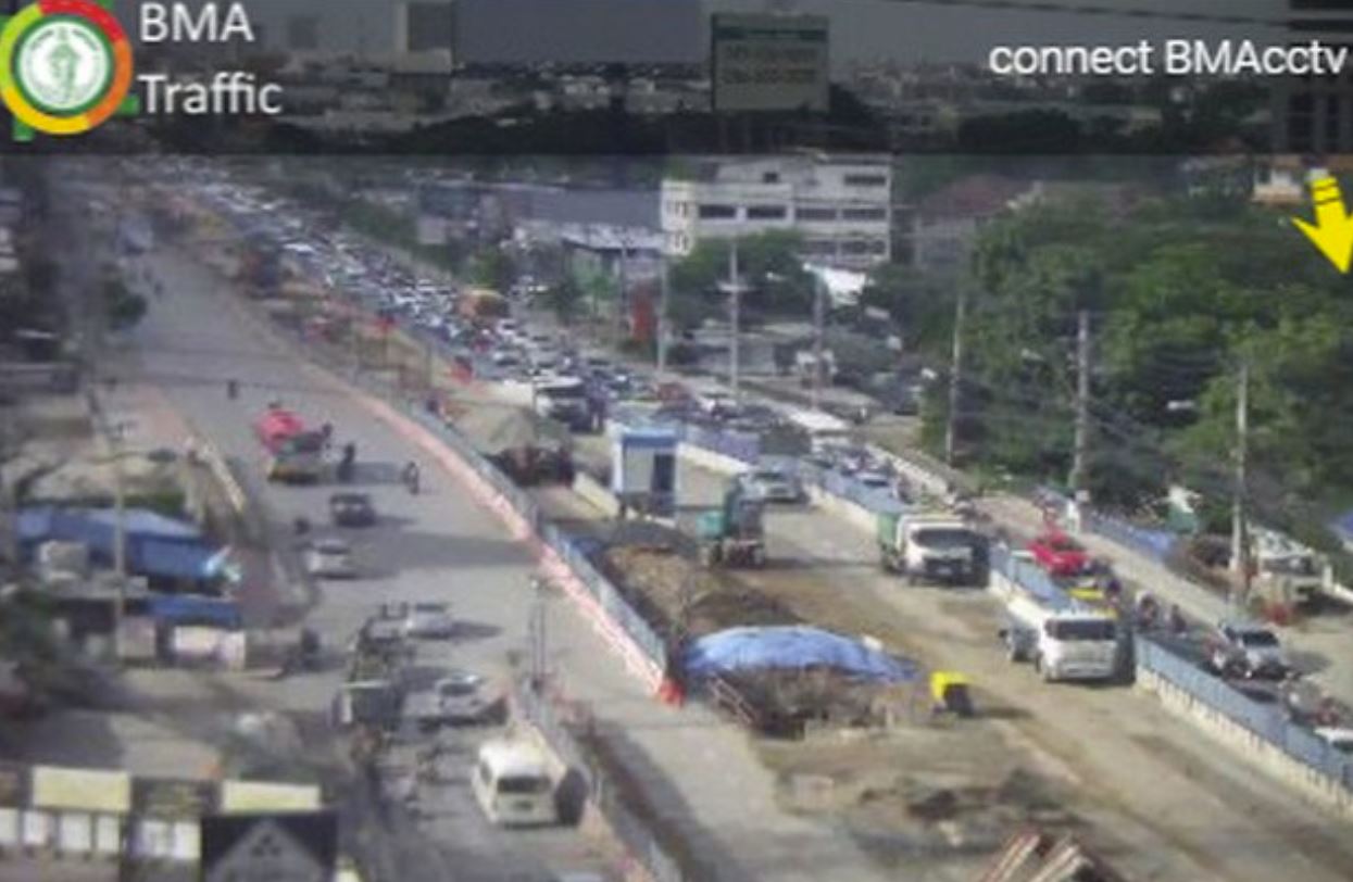 สภาพการจราจรบนสะพานข้ามแยกตลาดพลู มุ่งหน้าเดอะมอลล์ รถติดมาก