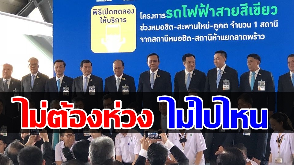 สถานีห้าแยกลาดพร้าว 9 ส.ค.- นายกฯ เปิดการทดลองให้บริการเดินรถไฟสายสีเขียว ช่วงสถานีห้าแยกลาดพร้าว-หมอชิต ยืนยันรัฐบาลเร่งสร้างรถไฟฟ้าอำนวยความสะดวกให้ประชาชน ขอประชาชนไม่ต้องกังวล ยังเป็นนายกฯ อยู่แบบนี้ ไม่ต้องห่วง ไม่ไปไหน