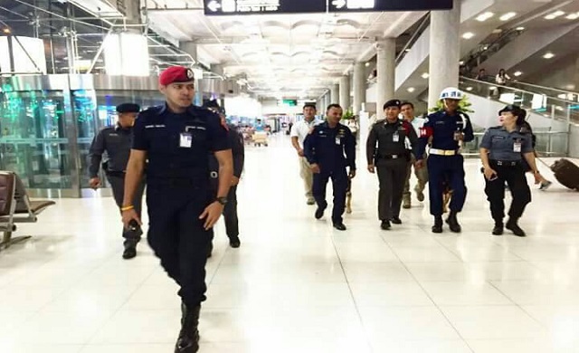 กรุงเทพฯ 12 ส.ค.-นายศิโรตม์ ดวงรัตน์ ผู้อำนวยการท่าอากาศยานสุวรรณภูมิ เปิดเผยว่า ขณะนี้ ท่าอากาศยานสุวรรณภูมิ (ทสภ.) บริษัท ท่าอากาศยานไทย จำกัด (มหาชน) (ทอท.) ได้มีการกำชับให้ทุกส่วนงานด้านความมั่นคงที่ดูแลด้านความปลอดภัยในพื้นที่ ทสภ. ทั้งหน่วยทหาร ตำรวจ อาทิ สถานีตำรวจภูธรท่าอากาศยานสุวรรณภูมิ ตำรวจท่องเที่ยว และ กองพันทหารปืนใหญ่ที่ 21 รักษาพระองค์ และฝ่ายรักษาความปลอดภัย ทสภ. เพิ่มความเข้มงวดในการดำเนินงานตามมาตรการการรักษาความปลอดภัย ซึ่งปัจจุบันอยู่ในระดับ 3 โดยให้คำนึงถึงความปลอดภัยของผู้โดยสาร ผู้ปฏิบัติงาน และผู้มาใช้บริการ ณ ทสภ. เป็นสำคัญ