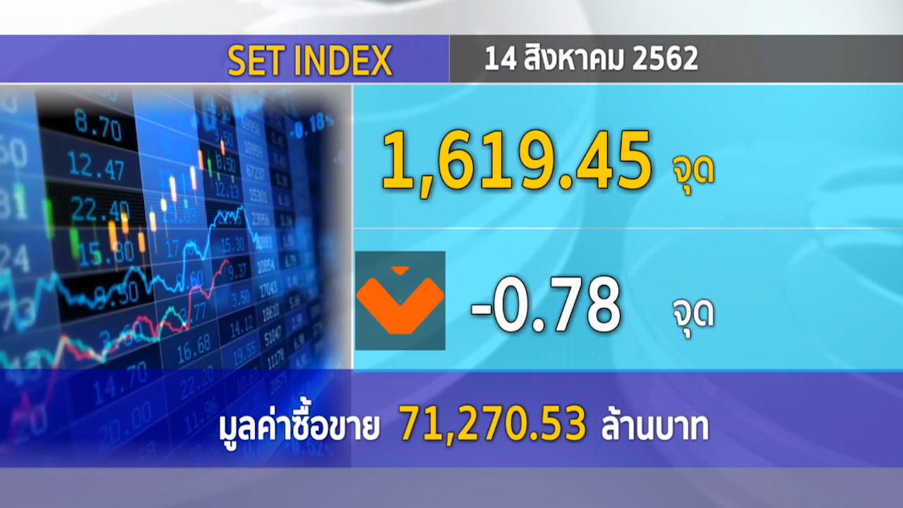 กรุงเทพฯ 14 ส.ค. – ตลาดหลักทรัพย์ปิดวันนี้ ลดลง 0.78 จุด ที่ระดับ 1,619.45 จุด มูลค่าการซื้อขาย 71,270.53 ล้านบาท จากแรงกดดันหลังกลุ่มแบงก์ทยอยปรับลดอัตราดอกเบี้ยเงินกู้.-สำนักข่าวไทย