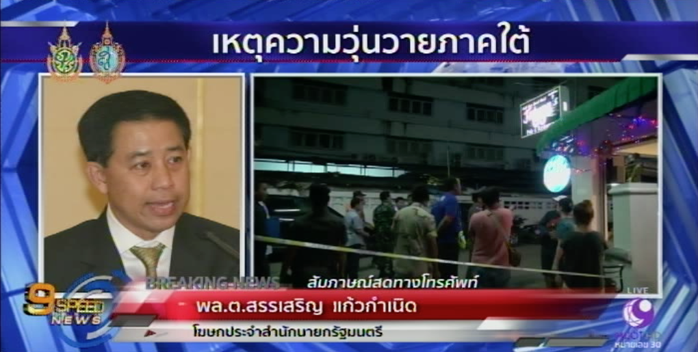 พล.ต.สรรเสริญ แก้วกำเนิด โฆษกรัฐบาล เผย พล.อ.ประยุทธ์ จันทร์โอชา นายกรัฐมนตรี ติดตามข้อมูลตลอด พร้อมแสดงความเสียใจไปยังครอบครัวผู้เสียชีวิต และบาดเจ็บ จากเหตุความวุ่นวายทางภาคใต้ เมื่อวานนี้ และล่าสุดเมื่อช่วงเช้าที่ผ่านมา สั่งการไปทุกหน่วยงานที่เกี่ยวข้อง อำนวยความสะดวก ช่วยเหลือด้านต่างๆ และอยากให้มีผู้อำนวยการแก้ไขสถานการณ์ทุกพื้นที่ มั่นใจเจ้าหน้าที่จะติดตามผู้กระทำผิดมาลงโทษได้