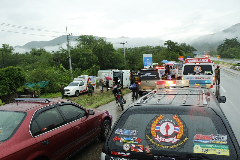 เมื่อเวลา 15.45 น. (16 ส.ค.) เกิดอุบัติเหตุรถทัวร์ปรับอากาศ ทะเบียนป้ายเหลือง 33 – 5597 กรุงเทพมหานคร เสียหลักตกข้างถนนสายลำปาง-เด่นชัย ก่อนถึงแยกแม่เมาะ ประมาณ 1 กิโลเมตร บ้านสถานี ต.พระบาท อ.เมือง จ.ลำปาง มีนักท่องเที่ยวบาดเจ็บ 10 ราย ส่วนใหญ่เป็นชาวต่างชาติ เจ้าหน้าที่กู้ชีพโรงพยาบาลลำปางและกู้ภัยเร่งช่วยเหลือนำส่งโรงพยาบาล