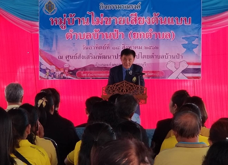 เป็นประธานพิธีเปิดพร้อมมอบป้ายรณรงค์หมู่บ้านไม่ขายเสียงต้นแบบตำบลบ้านป่า ณ