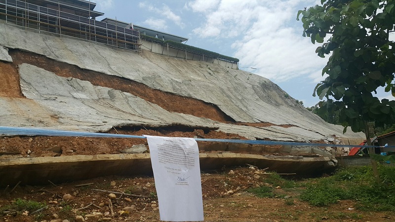 นายพจน์ปรีชา เพชรแกมแก้ว ปลัดเทศบาลตำบลปัว อ.ปัว จ.น่าน พร้อมเจ้าหน้าที่ฝ่ายป้องกันและบรรเทาสาธารณภัยเทศบาลฯ เข้าตรวจสอบสภาพผนังคอนกรีตกั้นดินของโรงแรมเกิดปัญหาทรุดตัวจากฝนตกหลายวันที่ผ่านมา และทับบ้านเรือนใกล้เคียง 1 หลัง ในพื้นที่หมู่ 6 ต.วรนคร อ.ปัว จึงให้ผู้อยู่อาศัยในบ้านดังกล่าวย้ายออกไปพักที่อื่นชั่วคราวจนกว่าทางโรงแรมจะมีการปรับปรุงแก้ให้มั่นคงแข็งแรงยิ่งขึ้น และพบว่ายังมีบ้านเสี่ยงถูกผนังคอนกรีตทับอีก 2 หลัง
