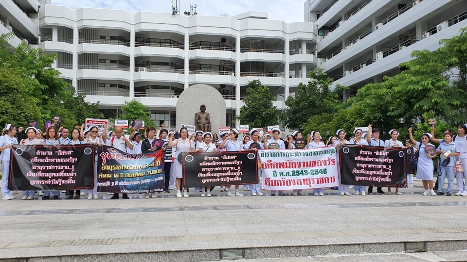 ตัวแทนชมรมอดีตพนักงานของรัฐในกระทรวงสาธารณสุข (สธ.). กว่า 100 คน นำโดยนายมานพ ผสม ประธานชมรมอดีตพนักงานของรัฐสังกัดกระทรวงสาธารณสุข (สธ.)เดินทางมายื่นหนังสือต่อนายอนุทิน ชาญวีรกูล รองนายกรัฐมนตรีและรัฐมนตรีว่าการกระทรวงสาธารณสุข(สธ.) เพื่อเรียกร้องขอคืนอายุราชการในช่วงที่เป็นพนักงานของรัฐและขอให้แก้ไขเงินเดือนเหลื่อมล้ำ โดยมีนายวัชรพงศ์ คูวิจิตรสุวรรณ เลขานุการ รมว.สาธารณสุข , นายเรวัต อารีรอบ ผู้ช่วยเลขารมช.สาธารณสุข และ นพ.ไพศาล ดั่นคุ้ม รองปลัด สธ. เข้ารับเรื่องดังกล่าว พร้อมทั้งได้เข้าหารือร่วมกันเพื่อหาทางออกในการช่วยเหลือบุคลากรกลุ่มนี้จำนวน 24,063 คน