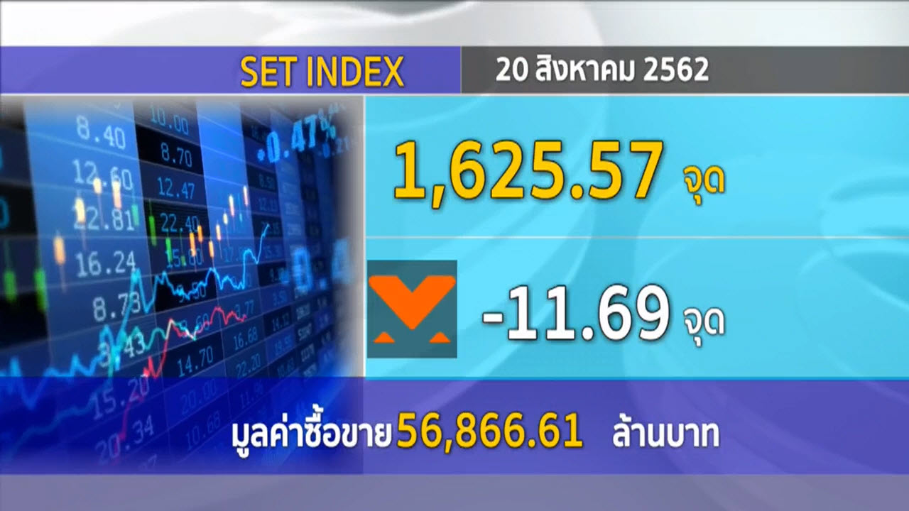 กรุงเทพฯ 20 ส.ค.-หุ้นไทยร่วง 11.69 จุด ปิด 1,625.57 จุด มูลค่าซื้อขาย 56,000 ล้านบาท ต่างชาติขายเกือบ 3,000 ล้านบาท