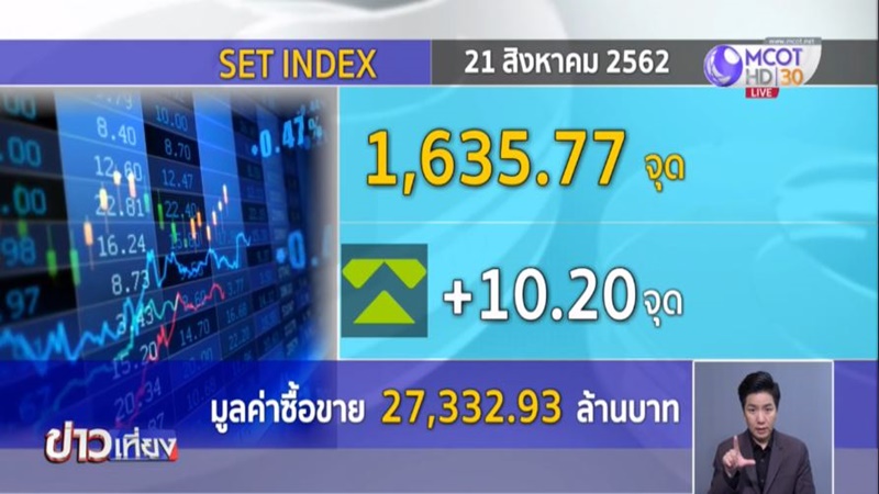 กทม. 21 ส.ค.-หุ้นไทยเช้านี้แกว่างแคบ โดยปรับขึ้นได้รับตัวเลขส่งออกที่ออกมาดี อย่างไรก็ตาม ตลาดยังมีแรงกดดันจากตลาดหุ้นในภูมิภาคเอเชียที่เช้านี้ต่างติดลบกันทั่วหน้าตามดาวโจนส์ จากความกังวลเศรษฐกิจชะลอตัว โดยดัชนีช่วงเที่ยงปิดบวก 10.20 จุด ที่ระดับ 1,635.77 จุด มูลค่าการซื้อขาย 27,332.93 ล้านบาท.-สำนักข่าวไทย