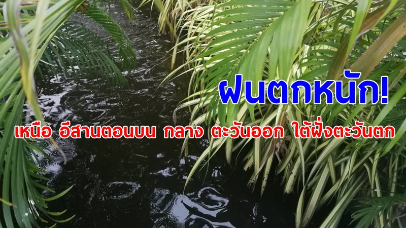 • ภาคตะวันออกเฉียงเหนือ มีเมฆเป็นส่วนมาก กับมีฝนฟ้าคะนองร้อยละ 60 ของพื้นที่ และมีฝนตกหนักบางแห่ง บริเวณจังหวัดเลย อุดรธานี หนองคาย บึงกาฬ สกลนคร นครพนม มุกดาหาร และอุบลราชธานี อุณหภูมิต่ำสุด 23-25 องศาเซลเซียส อุณหภูมิสูงสุด 31-35 องศาเซลเซียส