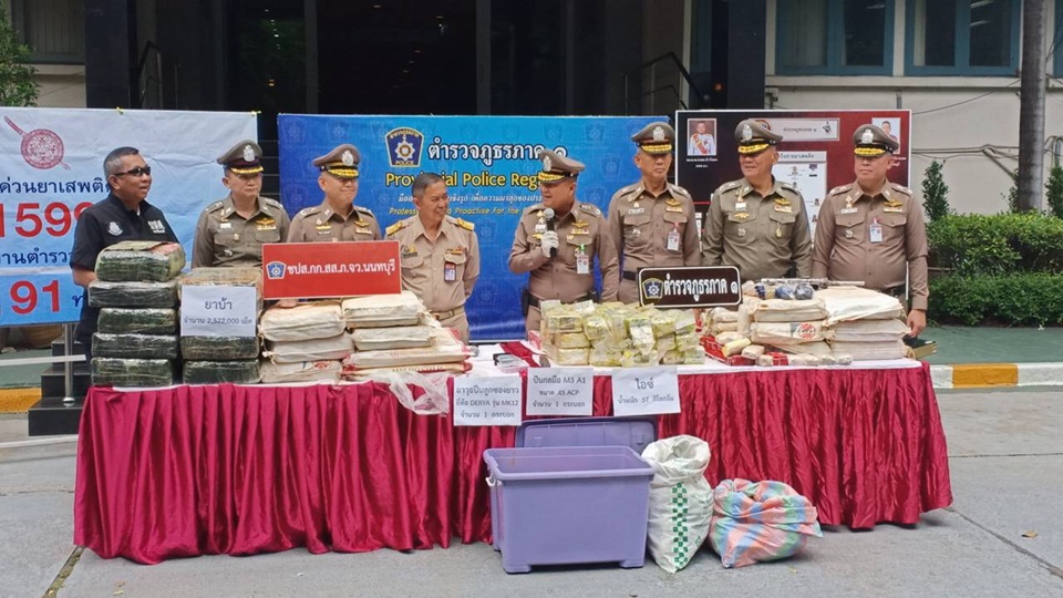 พล.ต.ท.อำพล บัวรับพร ผู้บัญชาการตำรวจภูธรภาค 1 แถลงผลการจับกุมเครือข่ายยาเสพติดรายใหญ่ ของกลางยาบ้ากว่า 2 ล้าน 5 แสนเม็ด ผู้ต้องหาคือนาย อธิวัฒิ บุญจง อายุ 24 ปี และนายชานนท์ สุทธิบานเย็น อายุ 34 ปี โดยจับกุมได้ริมทางช่วง ถ.พระราม 2 ซอย8 เขตจอมทอง กรุงเทพฯ จากนั้นขยายผลตรวจค้นบ้านพักในซอยบางแวก 46 เขตภาษีเจริญ พบของกลาง ยาบ้าจำนวน 2,522,000 เม็ด / ไอซ์ น้ำหนัก 37 กิโลกรัม / อาวุธปืนกลมือ แบบเอ็ม3 ขนาด .45 เอซีพี จำนวน 1 กระบอก / อาวุธปืนลูกซองยาว ขนาดเบอร์ 12 จำนวน 1 กระบอก