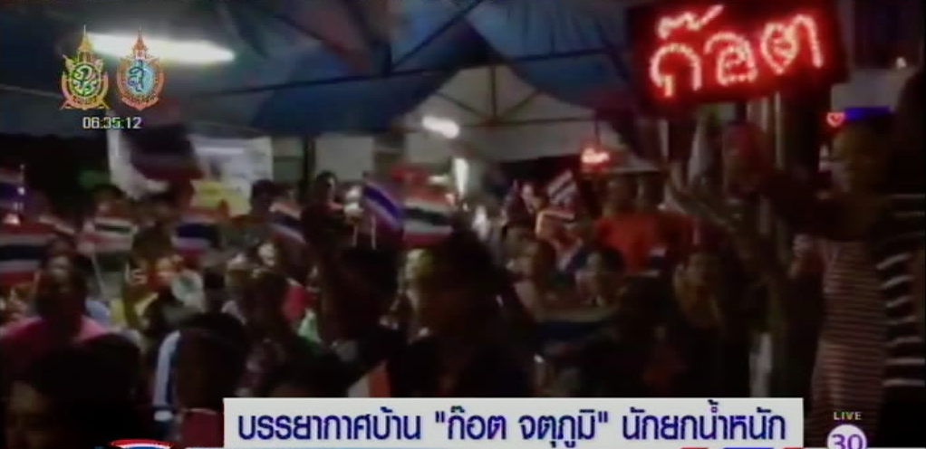 นครราชสีมา 11 ส.ค.- บรรยากาศที่บ้านของ เจ้าก๊อต จตุภูมิ ชินวงศ์ คึกคักมีชาวบ้านมาตามเชียร์กันแน่นขนัด ส่งเสียงเชียร์พร้อมป้ายไฟและโบกธงชาติไทย