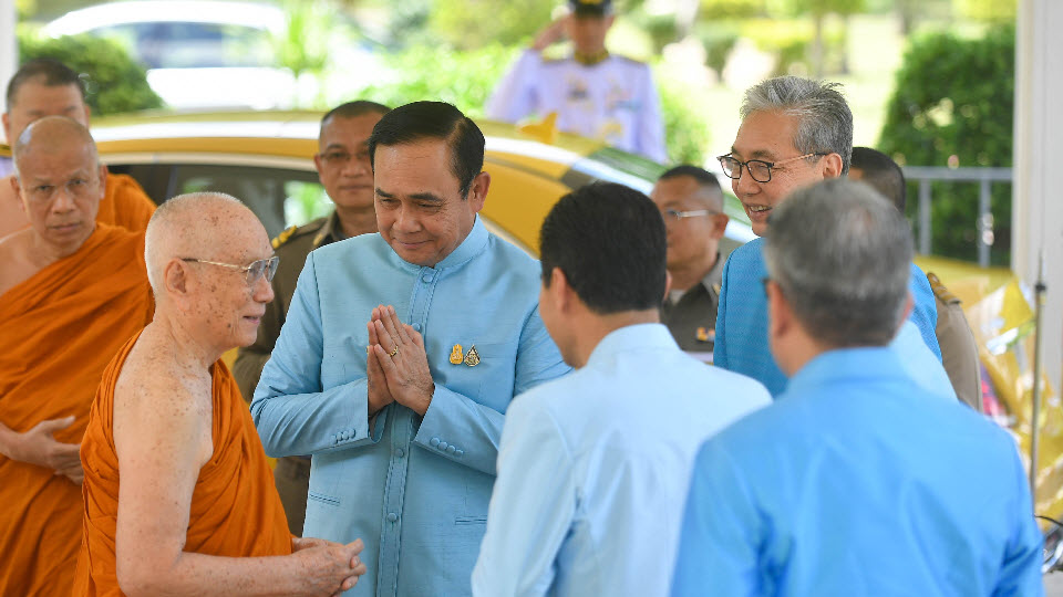ผู้สื่อข่าวรายงานว่า ก่อนเข้าถวายสักการะสมเด็จพระสังฆราชฯ นายกรัฐมนตรี ได้นำคณะรัฐมนตรี สักการะพระศรีศากยะทศพลญาณ พระประธาน พุทธมณฑลสุทรรศน์ และกล่าวกับสื่อมวลชนว่า เป็นการขอพรให้คนไทยเเละประเทศไทย เพราะเป็นนายกรัฐมนตรีต้องทำเพื่อคนไทย รวมถึง คณะรัฐมนตรีด้วยเช่นกัน เพราะการให้กำลังใจซึ่งกันเเละกันเป็นสิ่งที่ดี พร้อมชื่นชมสถานที่พุทธมณฑลว่า สวยสะอาด และอย่าปล่อยให้ต้นไม้ล้ม . – สำนักข่าวไทย