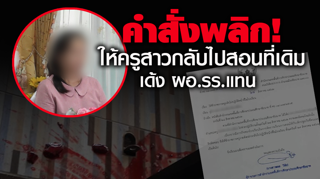 ชัยนาท 29 ส.ค.-คำสั่งพลิก ผอ.สพป.ชัยนาท ออกหนังสือให้ครูสาวกลับไปสอนที่เดิม เด้ง ผอ.โรงเรียนแทน เซ่นปมแฉอาหารกลางวัน