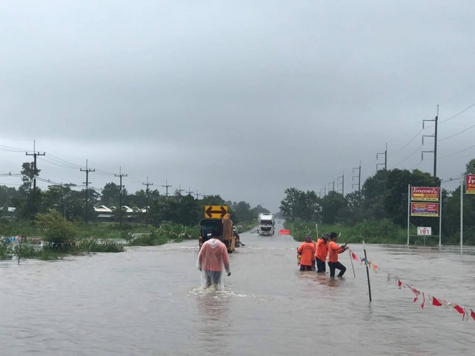 จังหวัดขอนแก่น 5 แห่ง ได้แก่ ทางหลวงหมายเลข 2 พล – บ้านไผ่ อ.พล ช่วงกม.ที่ 281 -283 ระดับน้ำสูง 60 ซม. การจราจรไม่สามารถผ่านได้ในช่องทางซ้าย เบี่ยงการจราจรให้วิ่งสวนกันในช่องทางขวา ทางหลวงหมายเลข 2 พล – บ้านไผ่ อ.พล ช่วงกม.ที่ 293 -294 ระดับน้ำสูง 100 ซม. การจราจรไม่สามารถผ่านได้ ทางหลวงหมายเลข 23 บ้านไผ่ – ไพศาล ช่วงกม.ที่ 1 – 4 ระดับน้ำสูง 70 ซม. การจราจรไม่สามารถผ่านได้ ทางหลวงหมายเลข 229 บ้านไผ่ – มัญจาคีรี อ.บ้านไผ่ ช่วงกม.ที่ 0 – 1 ระดับน้ำสูง 45 ซม. ทางหลวงหมายเลข 2297 บ้านลาน – เปือยน้อย อ.เปือยน้อย ช่วงกม.ที่ 1 น้ำกัดเซาะทางขาด การจราจรไม่สามารถผ่านได้