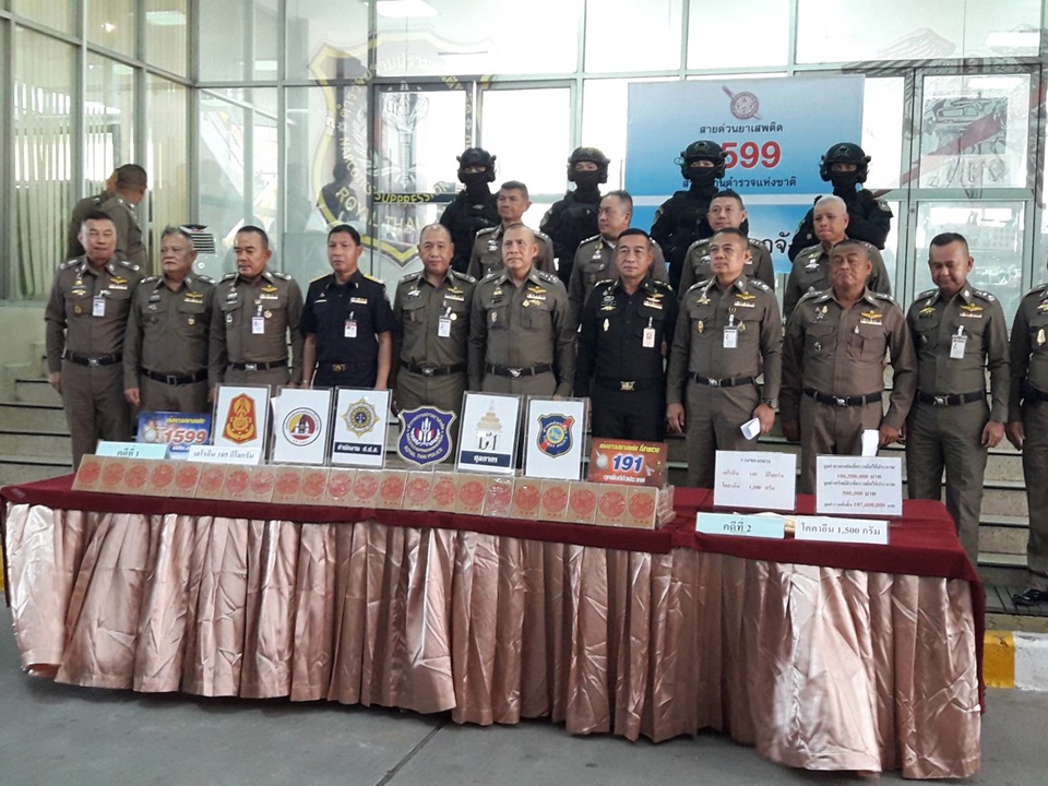พลตำรวจเอกเฉลิมเกียรติ ศรีวรขาน รองผู้บัญชาการตำรวจแห่งชาติ แถลงผลจับกุมและอายัดยาเสพติด โดยคดีแรกจับกุมนายศิริขวัญมิ่งเมือง คำธา อายุ 46 ปี ชาวอำเภอแม่แตง จังหวัดเชียงใหม่ พร้อมเฮโรอีน 300 แท่ง น้ำหนักรวม 105 กิโลกรัม โดยสามารถจับกุมได้ภายในห้องเช่าโรงกลึง จ.เจริญยนต์ ตำบลบางหลวง อำเภอเมืองปทุมธานี จังหวัดปทุมธานี หลังตำรวจสืบทราบว่า เครือข่ายค้ายาเสพติด มีการลักลอบลำเลียงยาเสพติดจากชายแดนภาคเหนือ เข้ามาในพื้นที่จังหวัดปทุมธานี โดยเข้ามาเช่าโกดังแห่งหนึ่ง เข้า-ออกเป็นประจำ จึงส่งเจ้าหน้าที่ฝ่ายสืบสวนลงพื้นที่ติดตามบุคคลต้องสงสัย จนกระทั่งพบผู้ต้องหาภายในห้องเช่าฯ จึงขอตรวจค้นภายในห้องพักพบของกลางดังกล่าว โดยผู้ต้องหายอมรับสารภาพว่ารับฝากเฮโรอีนจากขบวนการค้ายาเสพติดจริง และทำมาแล้วกว่า 5 ปี