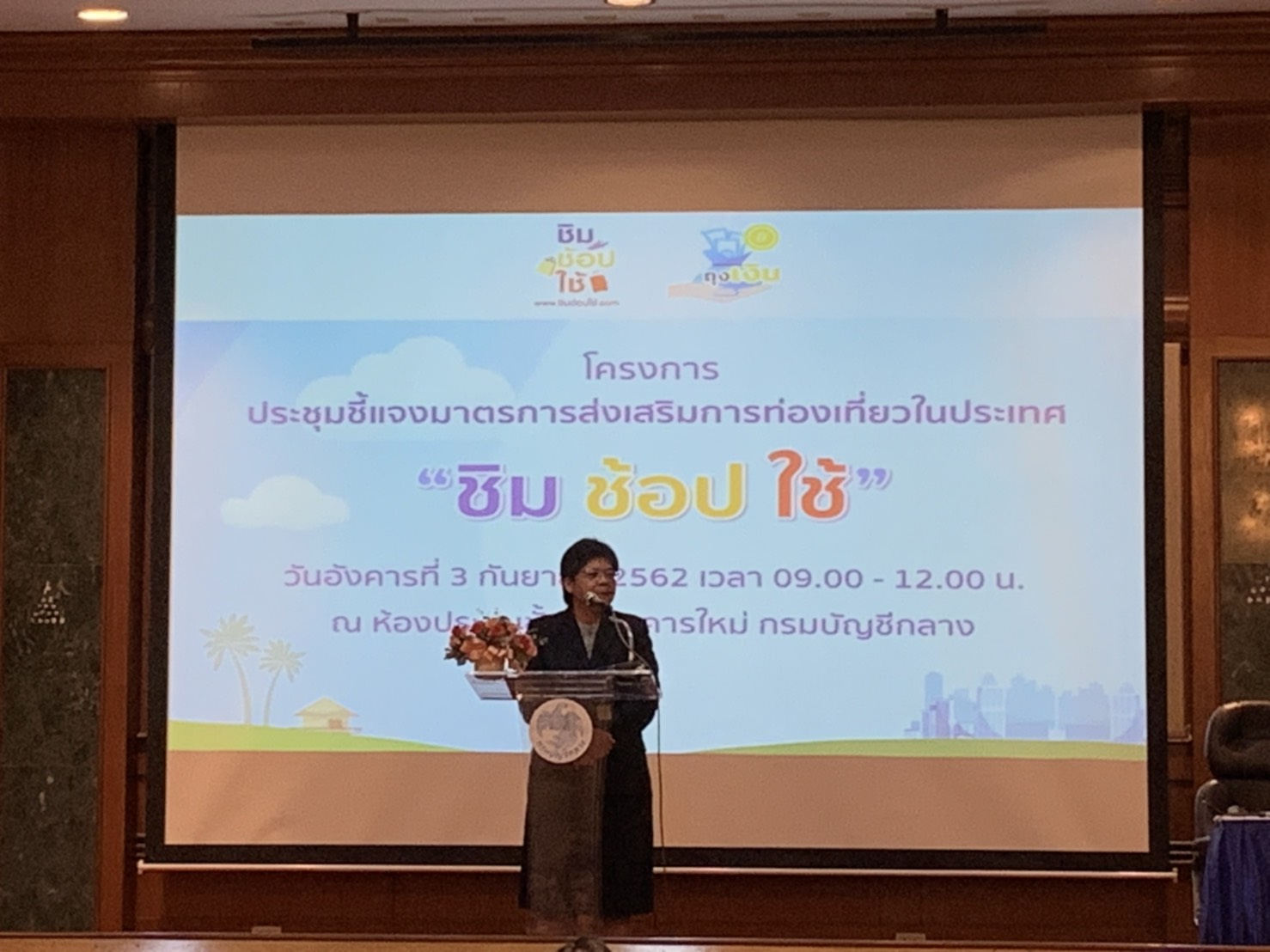 นางสาวสุทธิรัตน์ รัตนโชติ อธิบดีกรมบัญชีกลาง เปิดเผยว่า วันนี้ได้เชิญผู้ประกอบการ ร้านค้า มาฟังบรรยาย ขั้นตอนวิธีการและประโยชน์ที่จะได้รับจากการเข้าร่วมมาตรการชิม ช้อป ใช้ ของรัฐบาล ซึ่งมีผู้สนใจมาฟังจำนวนมาก ซึ่งยอดผู้ประกอบการการ ร้านค้าที่มาลงทะเบียนเข้าร่วมมาตรการนี้ตั้งแต่วันที่ 28 สิงหาคม – 1 กันยายน 2562 มีเพียง 2,800 ร้านค้า โดยส่วนใหญ่เป็นร้านค้าที่จำหน่ายสินค้ามากที่สุด จึงมีการปรับเป้าการรับสมัครผู้ประกอบการ ร้านค้าเหลือ 10,000 ร้านค้า จากเป้าหมาย 50,000 ร้านค้าทั่วประเทศ และหากไม่ได้ตามเป้าหมายที่วางไว้วันที่ 20 กันยายนนี้ อาจจะพิจารณาทบทวนขยายระยะเวลาการเปิดรับสมัครผู้ประกอบการร้านค้าออกไปอีก ซึ่งมั่นใจว่าทันต่อการจับจ่ายใช้สอยของประชาชนที่จะเข้าร่วมโครงการ 10 ล้านคนแน่นอน