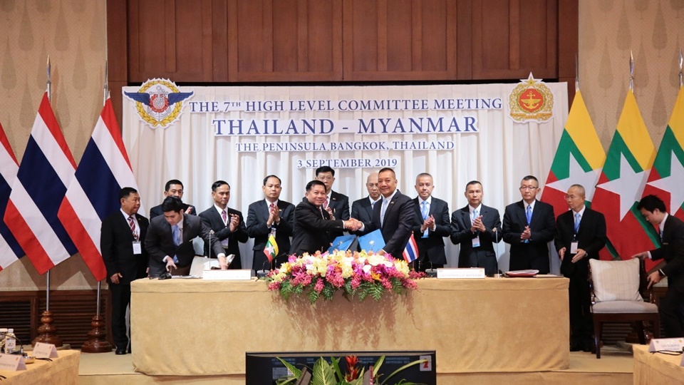 กรุงเทพฯ 3 ก.ย.-กองบัญชาการกองทัพไทยร่วมกับกองทัพเมียนมา จัดการประชุมคณะกรรมการระดับสูงไทย-เมียนมา ครั้งที่ 7 เพื่อเสริมสร้างความสัมพันธ์และความร่วมมือทางทหารระหว่างกองทัพไทย- เมียนมา ในการรักษาความสงบเรียบร้อย และการแก้ไขปัญหาความมั่นคง