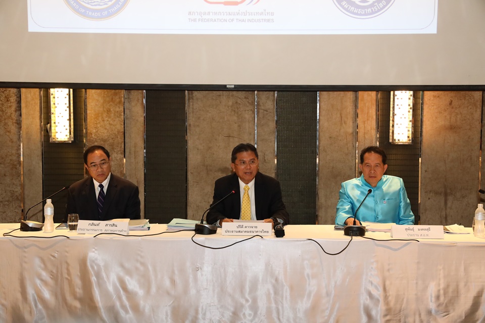 นายปรีดี ดาวฉาย สมาคมธนาคารไทย เป็นประธานการประชุมคณะกรรมการร่วมภาคเอกชน 3 สถาบัน หรือ กกร. ว่า ที่ประชุม กกร.มีความเป็นห่วงต่อสถานการณ์เศรษฐกิจไทยที่ยังขาดปัจจัยหนุน และมีโอกาสมากขึ้นทั้งปี 2562 เศรษฐกิจไทยอาจจะขยายตัวต่ำกว่าที่ประเมินไว้ โดยจีดีพีคาดการณ์จะอยู่ที่ร้อยละ 2.9-3.3 ตัวเลขส่งออกอยู่ที่ติดลบร้อยละ 1-1 อัตราเงินเฟ้ออยู่ที่ร้อยละ 0.8-1.2