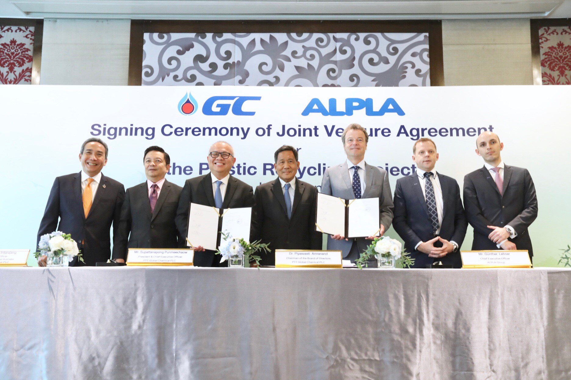 นายสุพัฒนพงษ์ พันธ์มีเชาว์ ประธานเจ้าหน้าที่บริหารและกรรมการผู้จัดการใหญ่ บริษัท พีทีที โกลบอล เคมิคอล จำกัด (มหาชน) เปิดเผยว่า จีซีในฐานะผู้ผลิตเคมีภัณฑ์เพื่อสร้างสรรค์คุณภาพชีวิตได้ตระหนักถึงความสำคัญของการใช้ทรัพยากรตามหลักการของเศรษฐกิจหมุนเวียน นอกจากนี้ ยังมีส่วนร่วมกับทุกภาคส่วนในการเก็บขยะพลาสติกจากทะเลมาผ่านกระบวนการผลิตเป็นสินค้าแฟชั่น การสร้างความรู้ความเข้าใจในการกำจัดขยะให้กับเด็กและเยาวชน รวมทั้งโครงการพีพีพี ระยอง ซึ่งเป็นความร่วมมือกับหน่วยงานภาครัฐและเอกชนในการกำจัดขยะ โดยธุรกิจเม็ดพลาสติกรีไซเคิลที่ร่วมทุนกับแอลพลาครั้งนี้ถือเป็นโรงงานผลิตเม็ดพลาสติกรีไซเคิลคุณภาพสูงแห่งแรกของไทย ทางจีซี จะถือหุ้น 70% และแอลพลา จะถือหุ้น 30% คาดว่าโรงงานจะเสร็จสมบูรณ์ภายใน 12 เดือนนับจากนี้ และไม่เกิน 15 เดือนจะเปิดดำเนินกิจการ ซึ่งโรงงานจะได้มาตรฐานระดับยุโรปอย่างแน่นอน