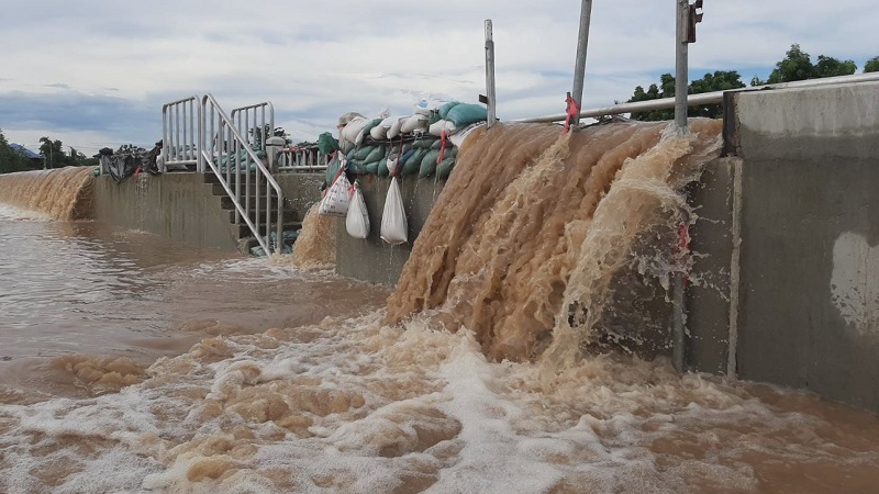 สุโขทัย 4 ก.ย.- ชุมชนวังหินระทึก แม่น้ำยมดันกระสอบทรายพังช่วงโค้งน้ำ ไหลเข้าท่วมตามบ้านเรือนอย่างรวดเร็ว เทศบาลเมืองสุโขทัยธานีเร่งเสริมบิ๊กแบ็คอีก 2 ชั้น  พร้อมเดินเครื่องสูบน้ำระบายออก