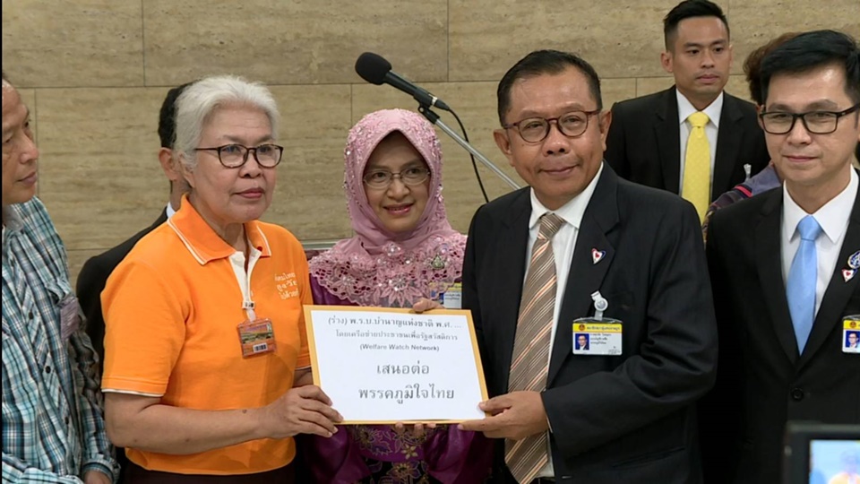 รัฐสภา 5 ก.ย.-เครือข่ายประชาชนเพื่อรัฐสวัสดิการ ยื่นหนังสือต่อตัวแทน 7 พรรคร่วมฝ่ายค้าน และตัวแทนพรรคร่วมรัฐบาล เพื่อขอให้ผลักดัน ร่าง พ.ร.บ.บำนาญแห่งชาติ จำนวน 25 มาตรา โดยมีเนื้อหาสาระเพื่อให้ประชาชนที่มีอายุ 60 ปีขึ้นไป มีหลักประกันด้านรายได้ ซึ่งเป็นหน้าที่ของรัฐตามหมวด 5 ในรัฐธรรมนูญว่าต้องจัดให้มีสวัสดิการให้กับบุคคลที่มีอายุ 60 ปีขึ้นไป ให้สามารถมีชีวิตอย่างเหมาะสม แก้ไขปัญหาความยากจนเรื้อรัง โดยอีก 2-3 สัปดาห์ จะนำรายชื่อประชาชนที่เข้าชื่อ 10,000 รายชื่อ พร้อมร่างกฎหมาย มาเสนอต่อสภาผู้แทนราษฎร