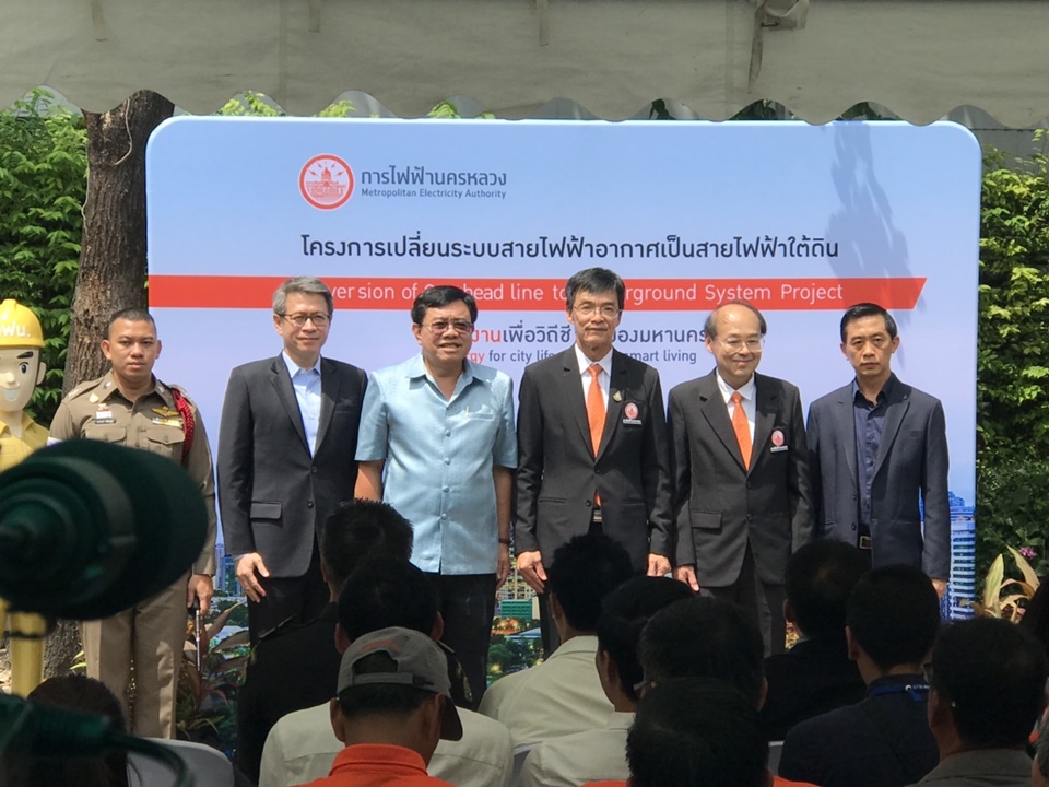 นายเทพศักดิ์ ฐิตะรักษา รองผู้ว่าการการไฟฟ้านครหลวง (กฟน.) พร้อมคณะผู้บริหาร และพนักงาน แถลงข่าวความสำเร็จโครงการเปลี่ยนระบบสายไฟฟ้าอากาศเป็นสายไฟฟ้าใต้ดิน ถนนนานาเหนือ (Change@NANA)