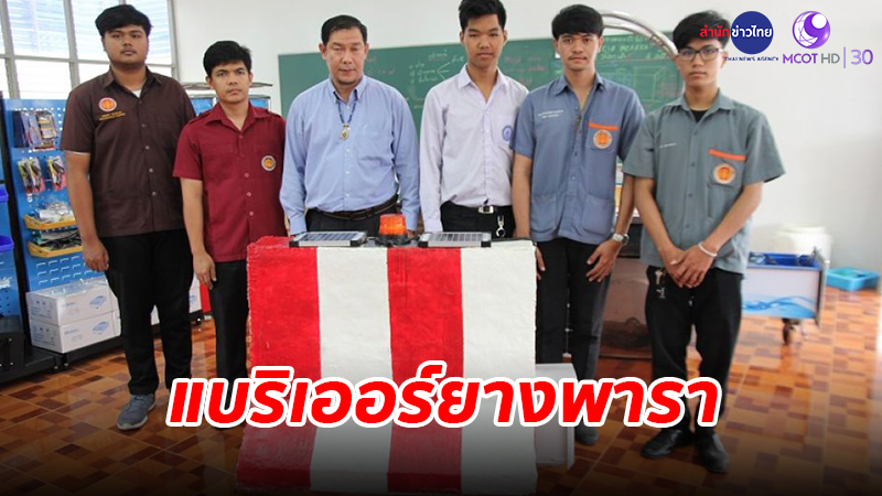 สุราษฎร์ธานี 6 ก.ย.- สุดยอด! นักศึกษาวิทยาลัยเทคนิคสุราษฎร์ธานีคิดค้นสำเร็จ “แบริเออร์ยางพารา” มีมาตรฐาน คงทน คุณสมบัติเยี่ยมกว่าแบริเออร์พลาสติกที่ใช้ปัจจุบัน อาจารย์เตรียมนำเสนอนายกรัฐมนตรี พิจารณาใช้เพิ่มมูลค่ายางพารา
