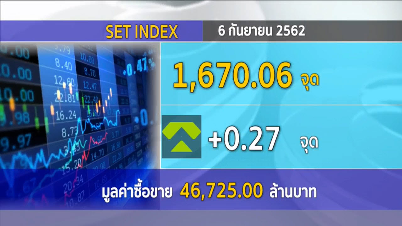 กรุงเทพฯ 6 ก.ย. – ตลาดหลักทรัพย์ปิดวันนี้ที่ระดับ 1,670.06 จุด เพิ่มขึ้น 0.27 จุด (+0.02%) มูลค่าการซื้อขาย 46,725.00 ล้านบาท